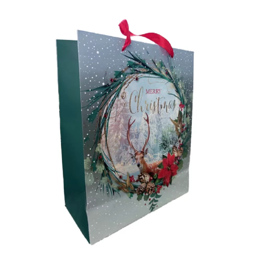 Ajándéktasak szarvasos koszorú (26x32cm)