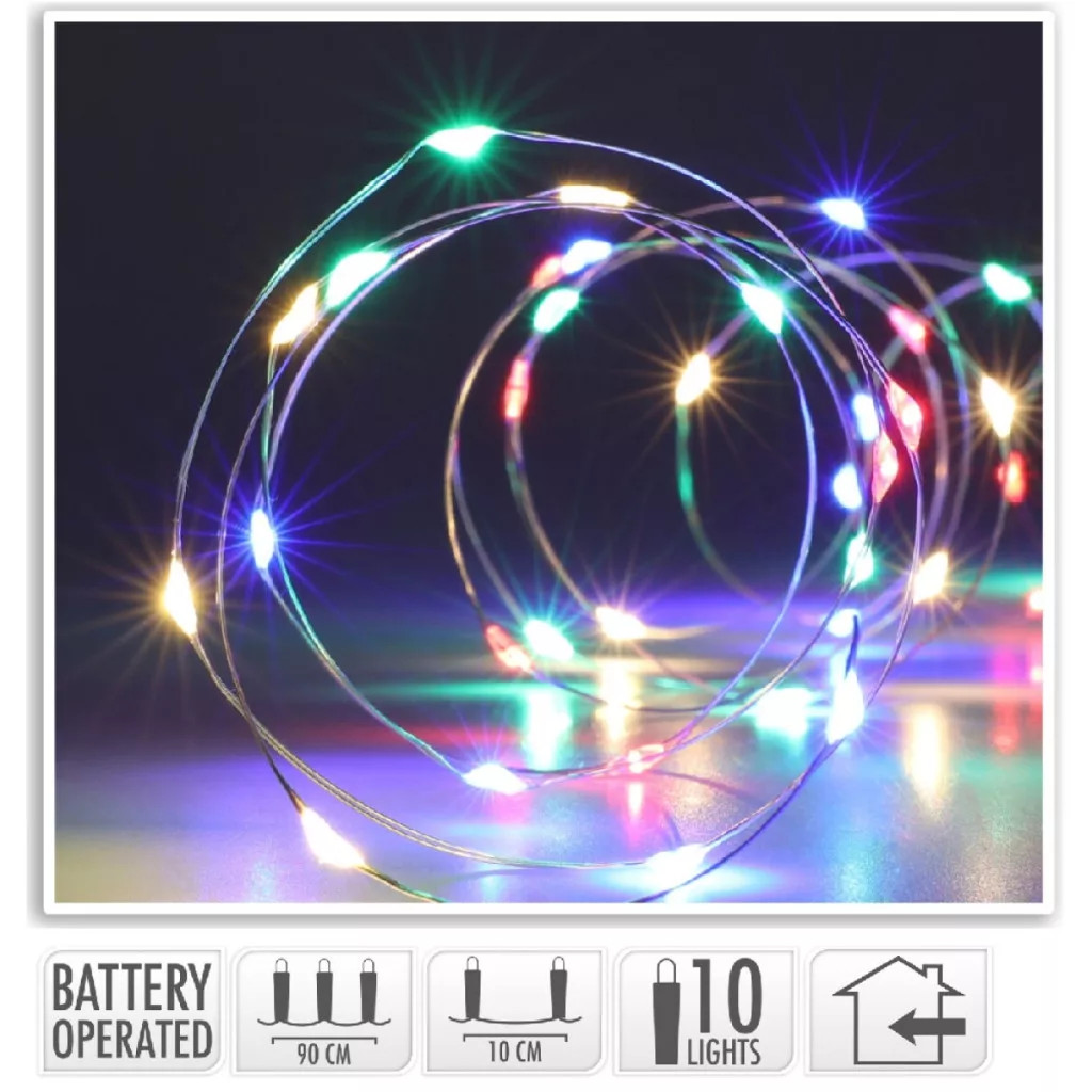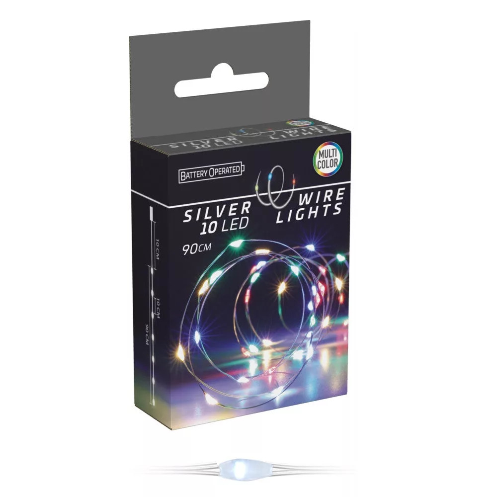 Ezüst drótkábeles fényfüzér 10 LED-es elemes