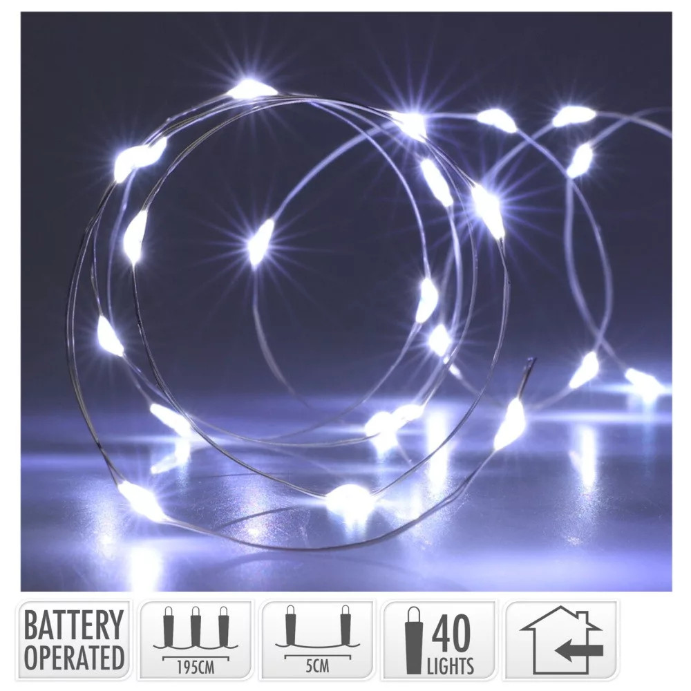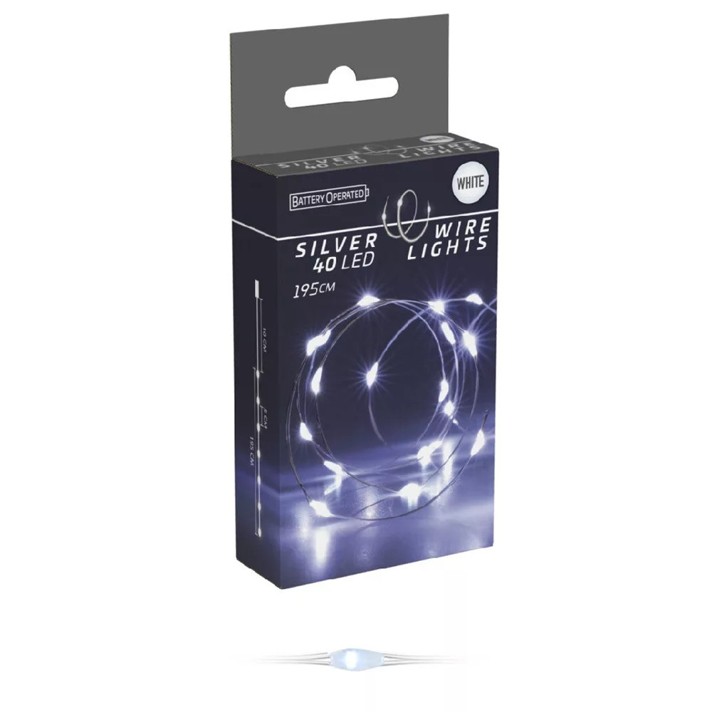 Ezüst drótkábeles fényfüzér 40 LED-es elemes