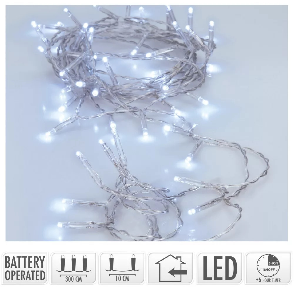 Fényfüzér 30 LED-es transparens időzítős elemes