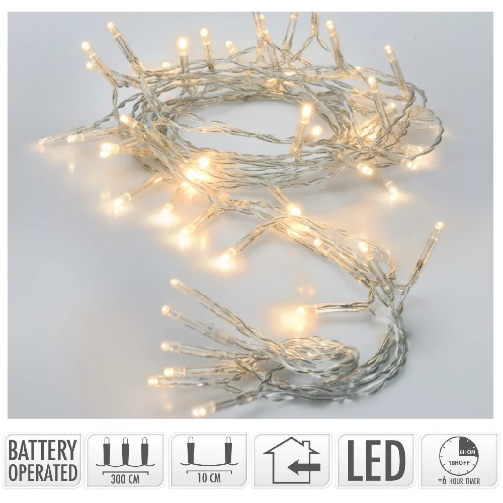 Fényfüzér 30 LED-es transparens időzítős elemes
