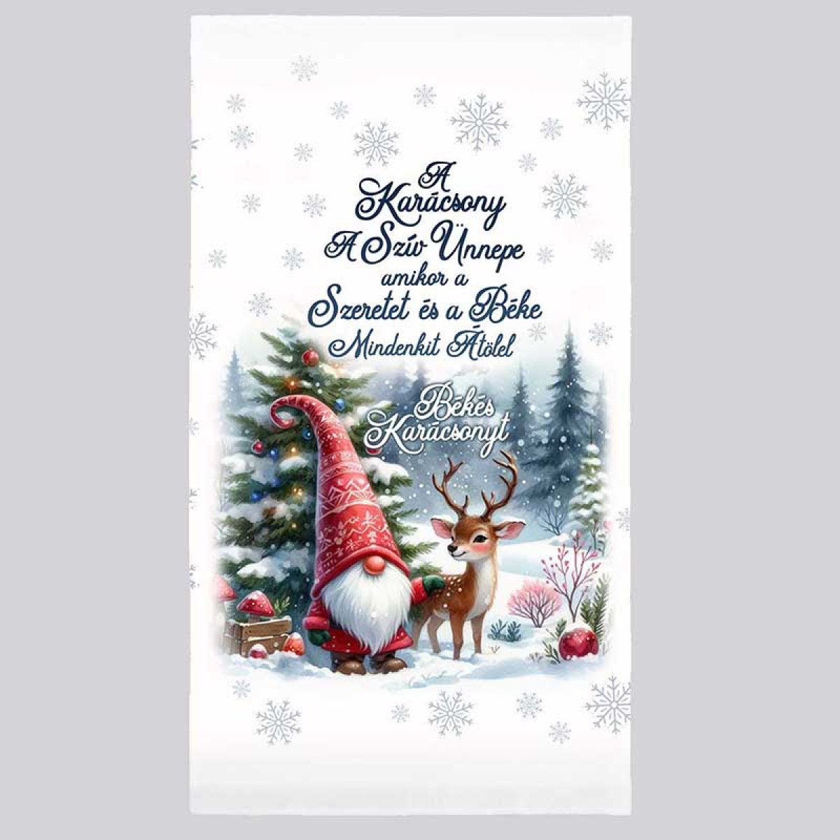 Ez a karácsonyi mintás törölköző tökéletes karácsonyi ajándék, amely örömet okoz mindazoknak, akik szeretik az ünnepi hangulatot és a kedves, melegszívű dekorációkat.
