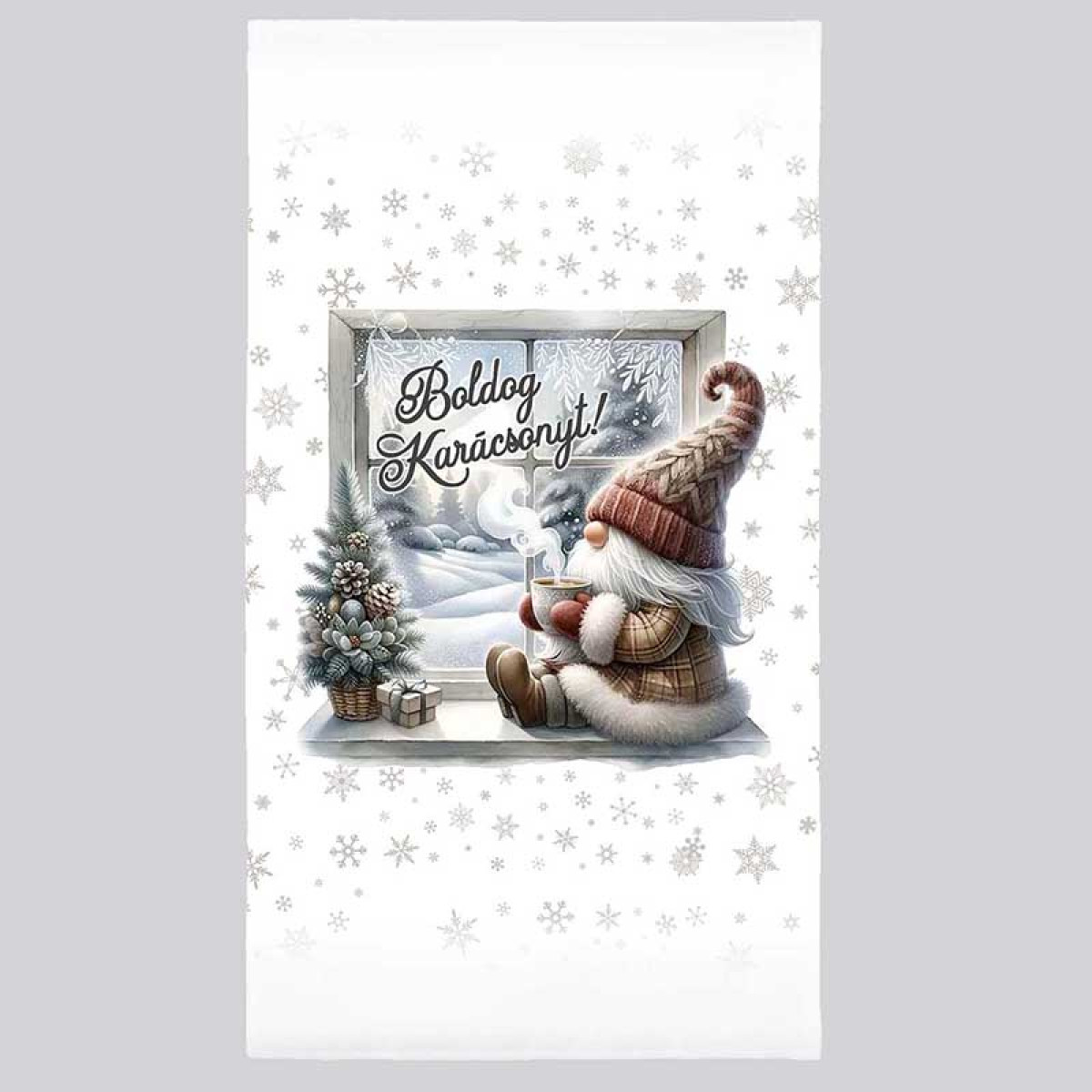 Szerezd be ezt az egyedi karácsonyi törölközőt, amelyen egy cuki gnóme manó szerepel rajt, aki forró itallal a kezében az ablakpárkányon ül. Ez a törölköző nemcsak kedves, de kiváló minőségű anyagból készült, így puha és jól felszívja a nedvességet.