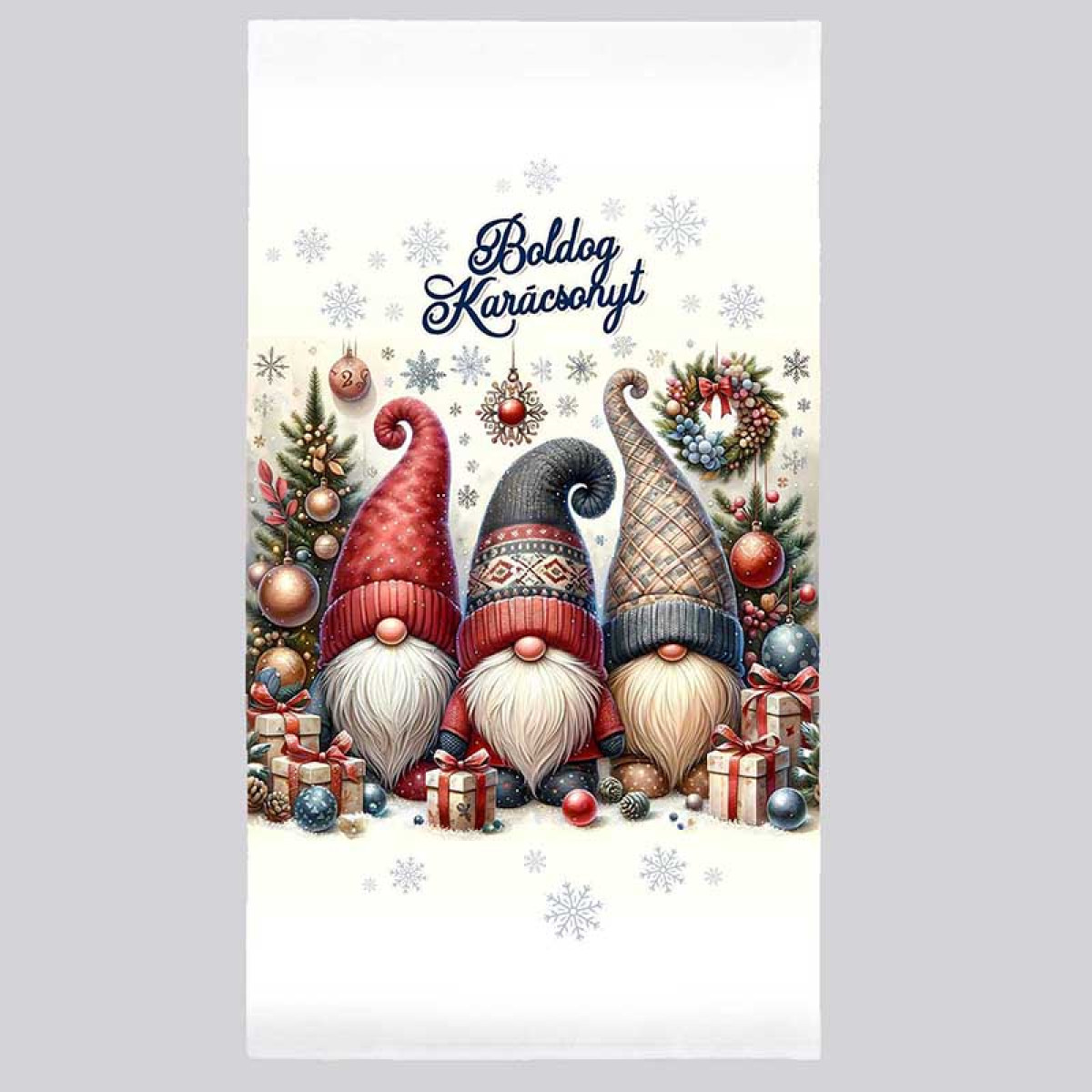 Üdvözölje az ünnepeket ezzel az imádnivaló karácsonyi mintás törölközővel! A 50x100 cm méretű törölköző három aranyos gnóme manót ábrázo.