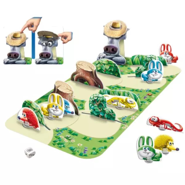 A kis erdei állatok vidáman játszanak a réten, és szinte észre sem veszik, hogy lassan rájuk esteledik. Gyorsan indulniuk kellene haza, de az erdei ösvény szélén egy farkas szunyókál. Hogyan tudnának elosonni mellette, hogy ne vegye észre oket? Csak úgy, hogy mindig a megfelelő búvóhelyet keresik meg maguknak.