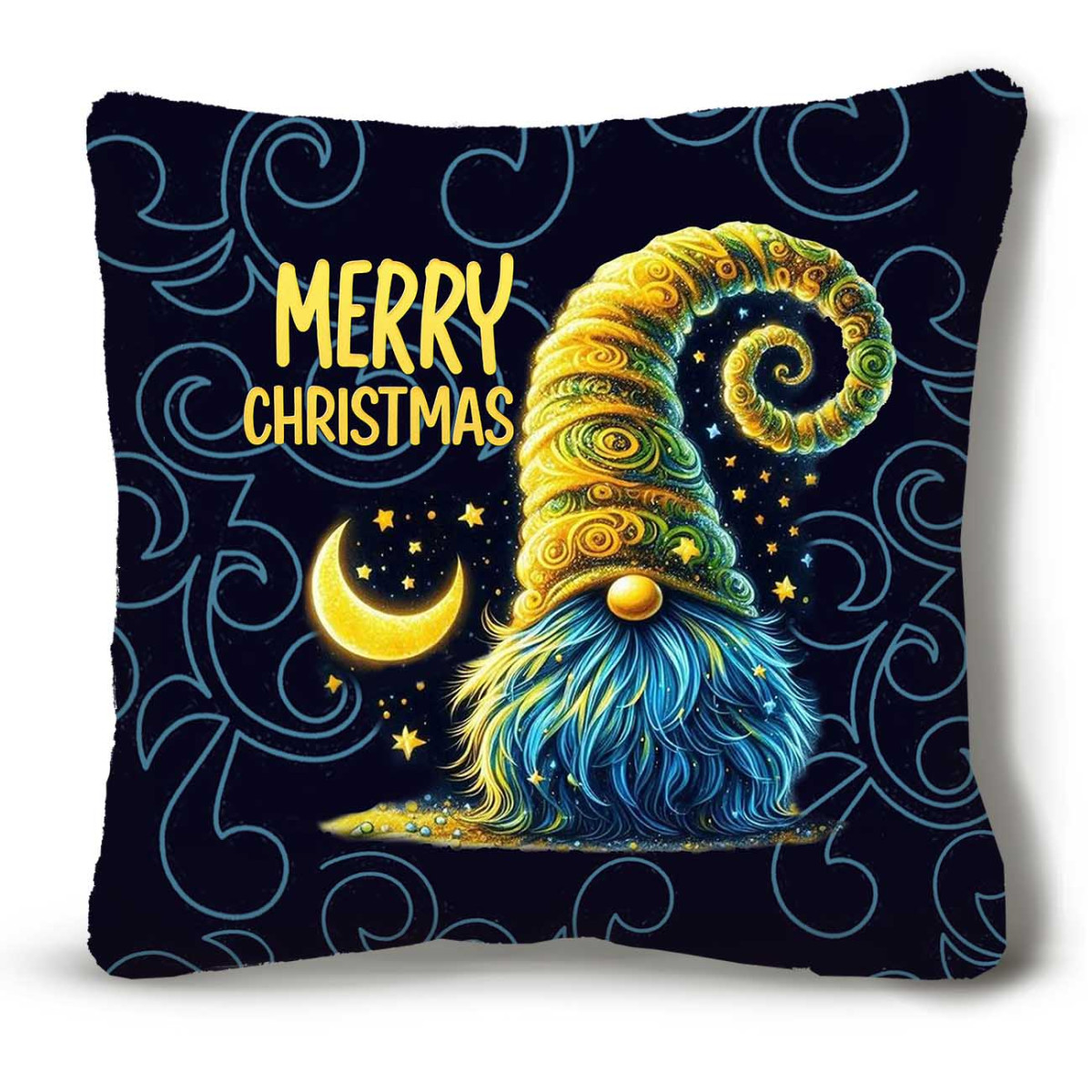 Varázsold különlegessé az ünnepi időszakot ezzel az egyedi Merry Christmas gnome manós párnával. A mély, sötét háttér és a ragyogó sárga–kék árnyalatú manó modern, mégis meghitt hangulatot teremt, amely bármely karácsonyi dekoráció központi eleme lehet.