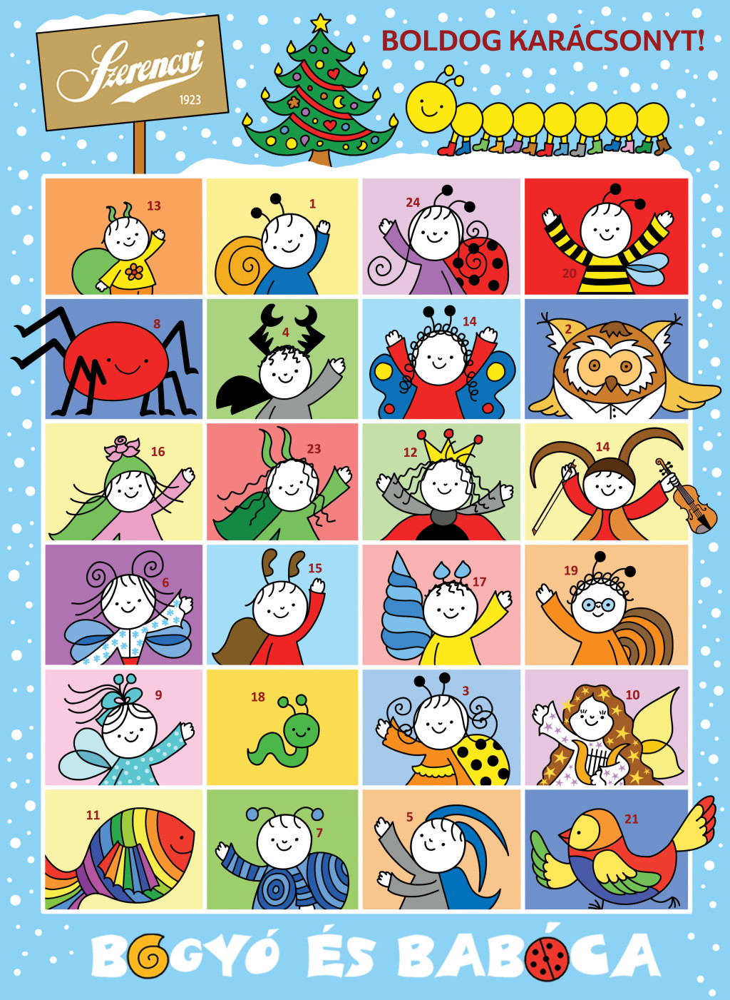 Bogyó, Babóca és barátaik várják minden kis ablakocskánál, hogy a gyerekek megtalálják az alattuk rejtőző finomságokat.